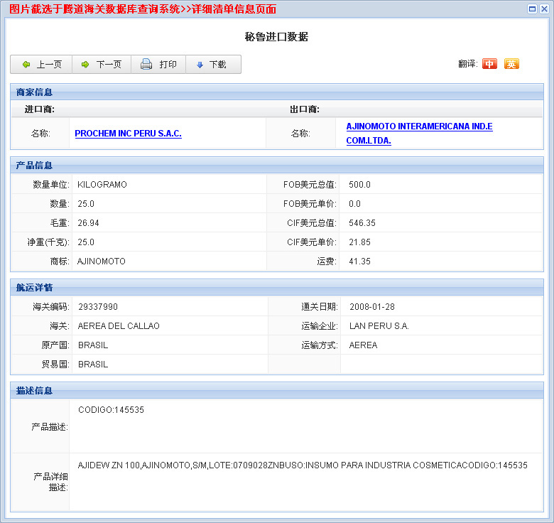 您当前的位置:腾道海关数据样本下载 >> 秘鲁海关数据 >>