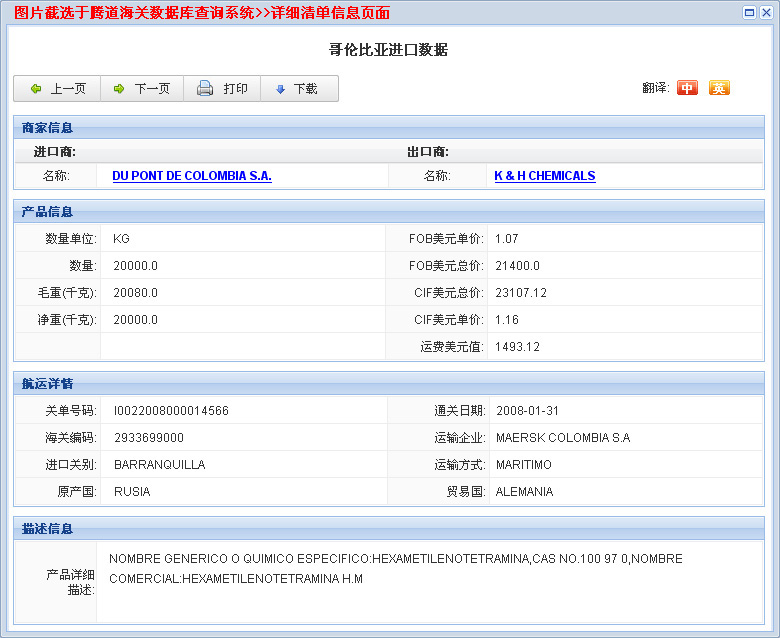 您当前的位置:腾道海关数据样本下载 >> 哥伦比亚海关数据 >>
