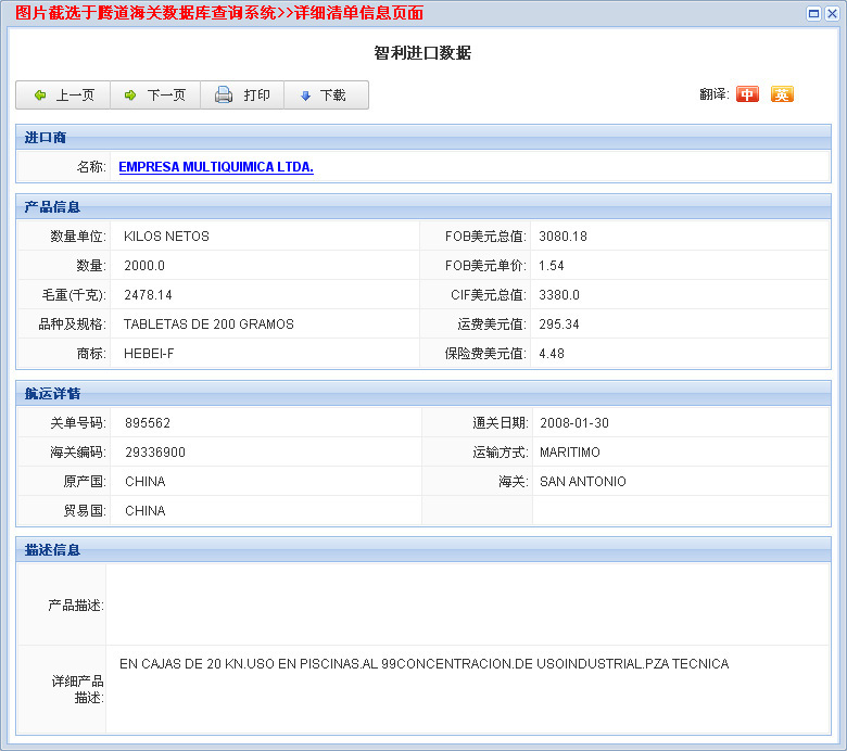 您当前的位置:腾道海关数据样本下载 >> 智利海关数据 >>