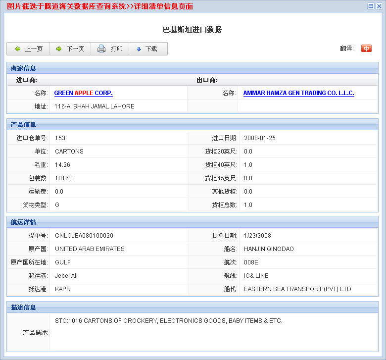 您当前的位置:腾道海关数据样本下载 >> 巴基斯坦海关数据 >>